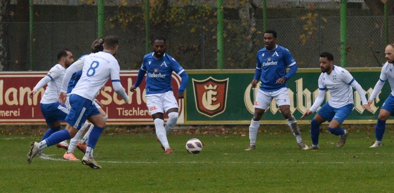 Nun muss man nicht sonderlich belesen sein, um sich mit griechischen Heldensagen auszukennen. Vielmehr gehört es zur üblichen Wochenendlektüre, sich bei einem Glas kretischem Rotwein mit den Geschichten von Herkules, griechisch Iraklis genannt, seinem Vater Zeus, seinen diversen Ehefrauen und seiner großen Widersacherin Hera zu beschäftigen. Es ist überliefert, dass Herkules zwölf Arbeiten zu erledigen hatte, die ihm Hera auferlegte. Grund war so eine Art Wehrdienstverweigerung, aber das würde hier zu weit führen. Eine erste Aufgabe des tapferen Hellenen bestand darin, seinen dänischen Widersacher auf dem Spielfeld weg von einer Fünferkette zu locken und ihm eine Sechserkette aufzuerlegen. Da sich Araz Amo zunächst auf dem Spielbogen wiederfand, dann aber nicht zu Beginn des Spiels auf dem Platz stand, werden wir nie herausfinden, wie sich die vier Innenverteidiger des SVA formiert hätten. Es begann also die handelsübliche Füngerkette, die nach vorne durch David Sitzer und Anis Nehme bewacht wurde und Entlastung durch Lukas-Nigel Nensel und Frank „the Tank“ Emeka Munu erfahren sollte. Den ersten Torabschluss hatten die Blauen nach fünf Minuten durch Aron Gebreselasie, der aber nicht zum Torerfolg führte. Damit hatten die Griechen die erste der Herkulesaufgaben erfüllt und die einzige Torchance der Arminen im ersten Durchgang vertrieben. Die zweite Aufgabe der Hellenen bestand darin, Aron Gebreselasie zu ermüden, indem sie ihn häufig ins abseits stellten. Dies gelang in den ersten zwanzig Minuten mehrfach und auch diese Aufgabe war erfüllt. Nun sollte die neunköpfige Hydra erlegt werden, was im Fußballjargon übersetzt bedeutet, einen Torchance mittels Elfmeter durch eine Schwalbe zu kreieren. Auch diese Aufgabe wurden von den Hellenen erledigt, aber Schiedsrichter Nils-Rene Voigt blieb tapfer und verhängte keinen Strafstoß. Zu offenkundig war das Schauspiel. Während die Blauen ihre eine Torchance bereits verspielt hatten, eröffnete sich den Hellenen die ihrige in der 30. Minute, als der Ball nach 31 Minuten an den Pfosten klatschte. Der Rest der Halbzeit war ähnlich ansehnlich wie das Ausmisten der Rinderställe des Augias, aber auch ein gutes Heldenepos braucht mal eine Ruhepause. Halbzeit. In den Katakomben wurden einige Karaffen gereicht und die Blauen verteidigten ihr Gehäuse bis hierher erneut tapfer.
