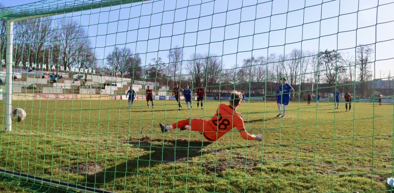 Henrik Larsen beorderte gleich drei Winterneuzugänge in die Startelf. Zentral begann Dag Rüdiger, in der Spitze sollte Björn Masur endlich für mehr Torgefahr sorgen und gesellte sich zu Aron Gebreselasie und mit Anton Zholud verdrängte ein junger, talentierter einen anderen jungen, talentierten Ukrainer. Vladyslav Pronko saß zunächst auf der Bank. Die Wunstorfer reisten mit viel Rückenwind an, gewannen sie ihr Auftaktspiel auf Kunstrasen in Goltern gegen das Schlusslicht Germania Ochtersum mit 5:0. Doch den besseren Start erwischten die Mannen in blau. Zwei Minuten waren gespielt, da eroberte Dag Rüdiger den Ball, flankte und fand Aron Gebreselasie, der hauchzart über das Tor spitzelte. Das hätte die frühe Führung sein können! Fortan neutralisierten sich beide Teams, die Blauen standen sortiert und spielten bei Balleroberung schnell nach vorne. Gefährlich wurde es nach 30 Minuten wieder, Yannick Bahls flankte und ließ den Ball fast ins lange Eck plumpsen. Es begann die starke Phase der Arminen, die bis dahin defensiv alles im Griff hatten. Anis Nehme legte zunächst auf Aron Gebreselasie auf, der erneut drüber zielte. Zwei Minuten später erlief sich der Stürmer einen langen Ball und konnte nur regelwidrig vom Schlussmann der Wunstorfer gestoppt werden, der ihn wüst von den Beinen holte. Anis Nehme schnappte sich die Kugel und verwandelte den fälligen Strafstoß sicher, wie im Hinspiel, zur Führung. Wie im Hinspiel blieben die Blauen dran und hatten weitere Chancen durch Aron Gebreselasie, der einmal von Yannick Bahls und einmal von Björn Masur bedient wurde. Dann war Halbzeit in einer Partie, in die der Gast nie richtig reingefunden hatte und die Blauen immer wieder gut umschalteten. Die Doppelspitze mit Aron Gebreselasie und Björn Masur suchten immer wieder denn Abschluss und sorgten für Gefahr. Knappe Führung, Pause.